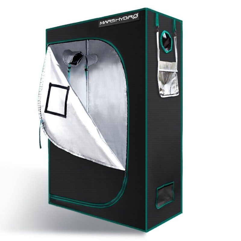 Kiváló minőségű sátor 120 x 60 x 180 cm méretekkel. Az anyag teljesen átlátszatlan és nem mérgező. A belső felület fényvisszaverő, és visszaveri a növényi fények színes fényét. A sátor tartós cipzárral és masszív szerkezettel rendelkezik, amelyet könnyű alumínium rudak és robusztus fém illesztések biztosítanak. A sátor több szellőzőnyílással is rendelkezik.