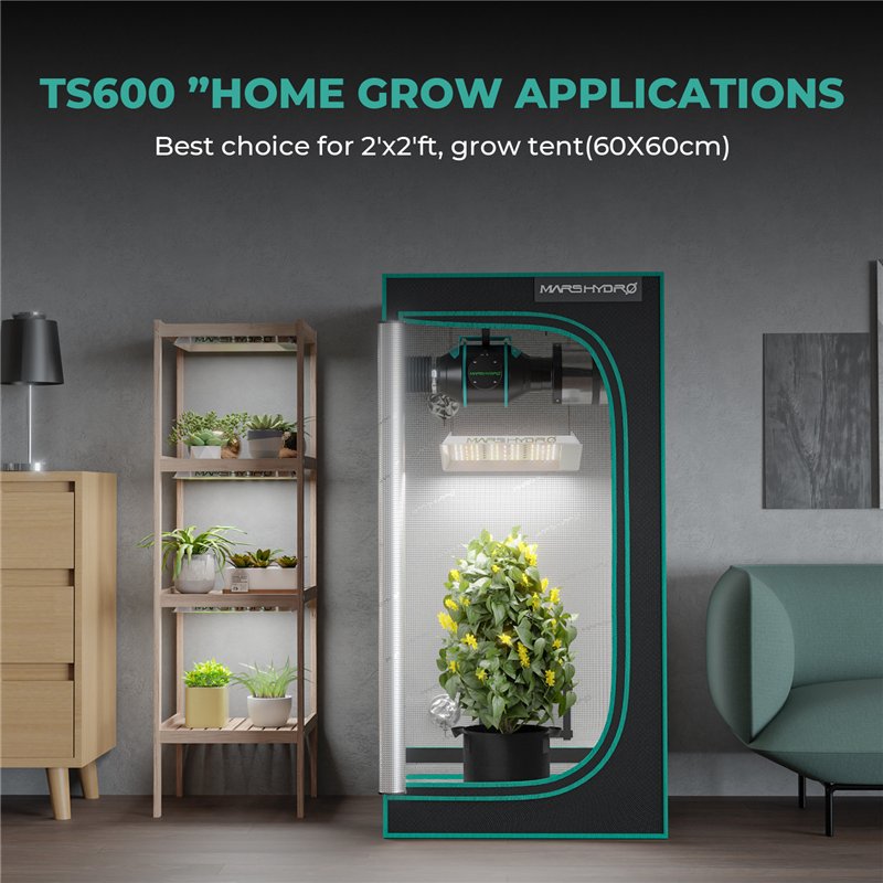 A komplett Mars Hydro TS600 termesztőkészletet kifejezetten 60x60 cm-es területre tervezték. A készlet kezdőknek és tapasztalt termesztőknek egyaránt alkalmas. Minőségi termék alacsony áron. A készlet telepítése nagyon egyszerű, és mindent tartalmaz, amire a növények termesztéséhez szüksége lehet. A MARS HYDRO TS600 LED GROW lámpa BridgeLux diódákkal rendelkezik. A modell továbbfejlesztett tápegységgel, hűtéssel és chipekkel rendelkezik, amelyek a Mars Hydro termékek között a legmagasabb minőséget képviselik.